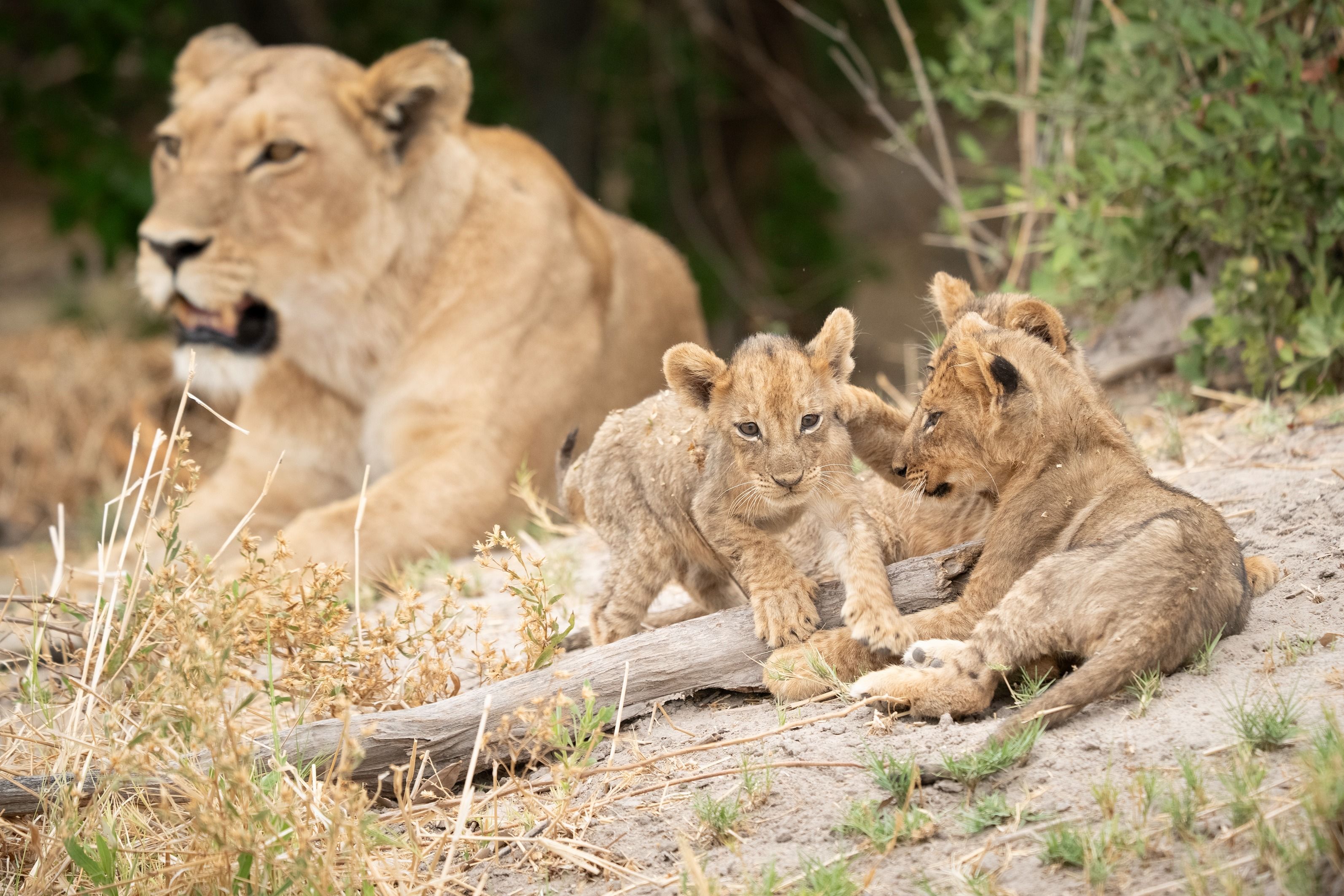 They move in wobbly bursts — a headlong stumble here, a clumsy pounce there — before collapsing in a pile of fur and dust. Their mother watches with serene exhaustion. For guests, the privilege is rare and intimate: to witness not just lions, but the beginning of lions. These four have been secreted only a short drive from camp; on an island dotted with clumps of wild sage, within which the cubs nestle down whilst their mother is off hunting.