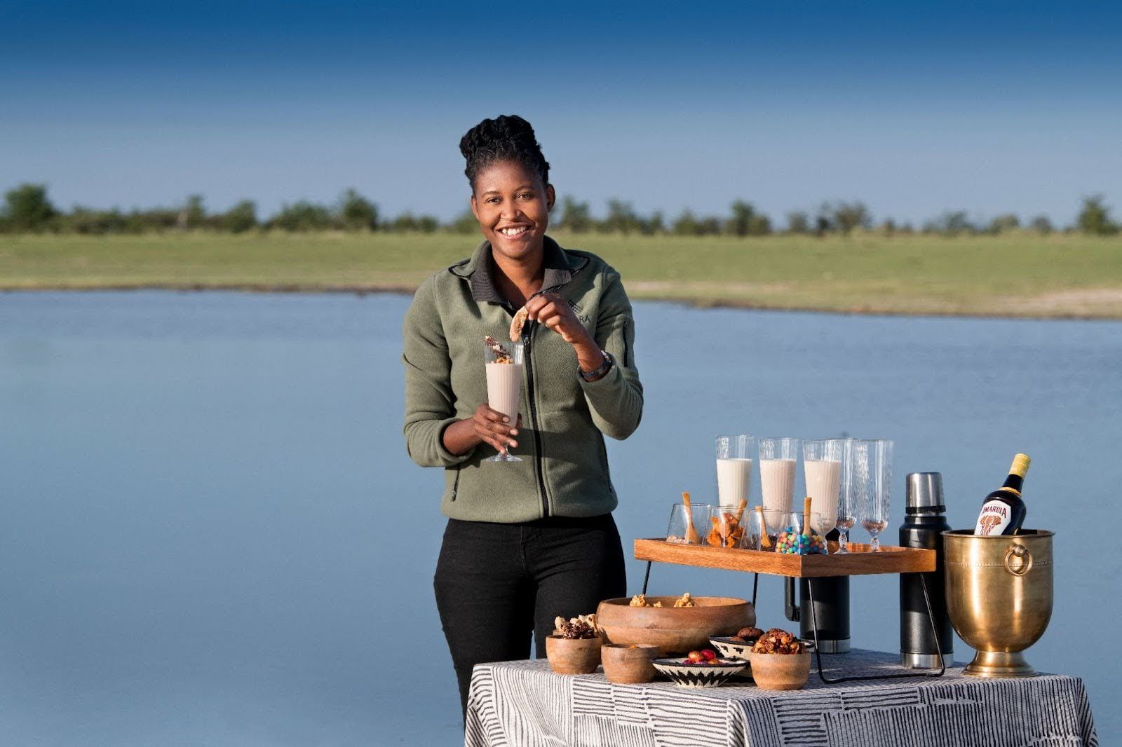 Her sundowner of choice? A crisp gin and tonic, ideally with a meaty snack in hand. Her soundtrack? Tswana traditional music, carrying the rhythm of her childhood and the stories of her people.